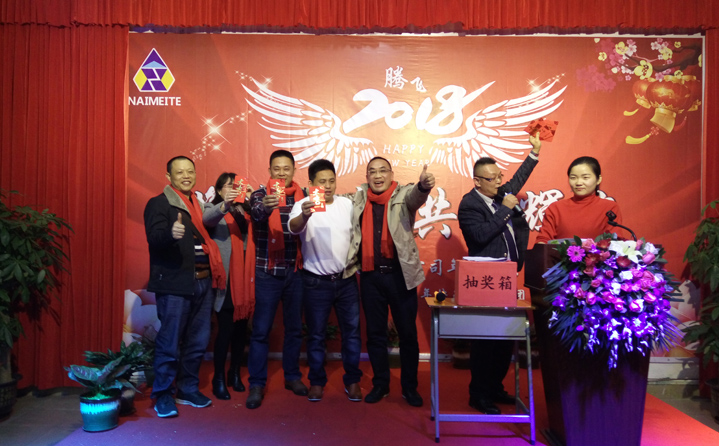 耐美特集團公司全體員工及嘉賓們歡聚一堂,邊享用著美酒佳肴邊觀賞著舞蹈及美妙的歌聲音樂?,F(xiàn)場還進行了抽獎,氣氛相當熱烈,群情激動,整場年會充滿歡聲笑語,其樂融融。