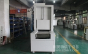 2、外形尺寸(約):總長(zhǎng)10200mm*總高1770mm(不含馬達(dá)高)*總寬1050mm,地面到網(wǎng)帶的高度為900mm,內(nèi)寬為650mm,進(jìn)料高度為500mm;烘干部分總長(zhǎng)8000mm,分4段,每段2000mm,烘干區(qū)前后設(shè)有自動(dòng)升降門;出口處需設(shè)有阻擋氣缸和治具感應(yīng),可以自動(dòng)和手動(dòng)運(yùn)行??梢允謩?dòng)清板,把機(jī)內(nèi)托盤(pán)手動(dòng)放出。